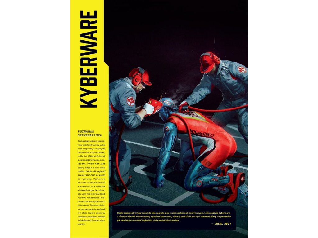 Nahlédni do temné budoucnosti, kde násilí, útlak a kyber implantáty nejsou jen běžnými nástroji – jsou doslova nezbytné k tomu, aby ses dostal dopředu. Prozkoumej různé čtvrti, gangy a historii Night City. Zjisti všechno možné o technologiích zítřka a prostuduj kybernetiku, zbraně a vozidla ze hry Cyberpunk 2077.